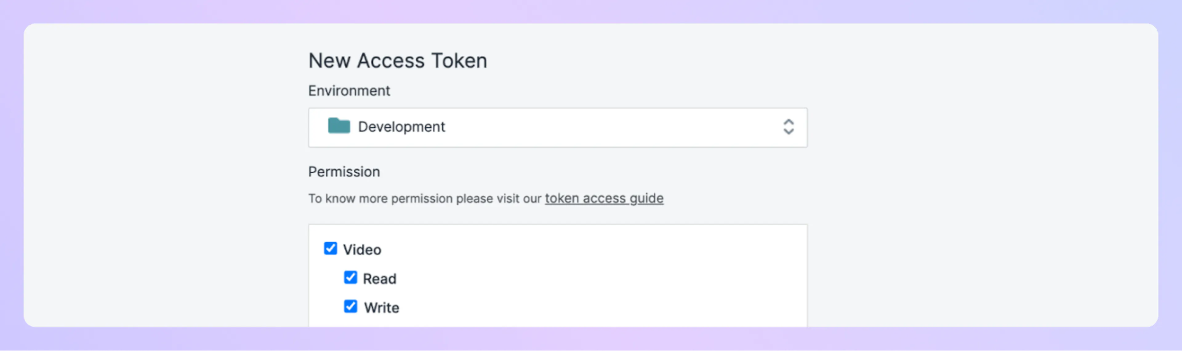 The screenshot below shows the dialog where you select the environment and permissions when creating a new token.