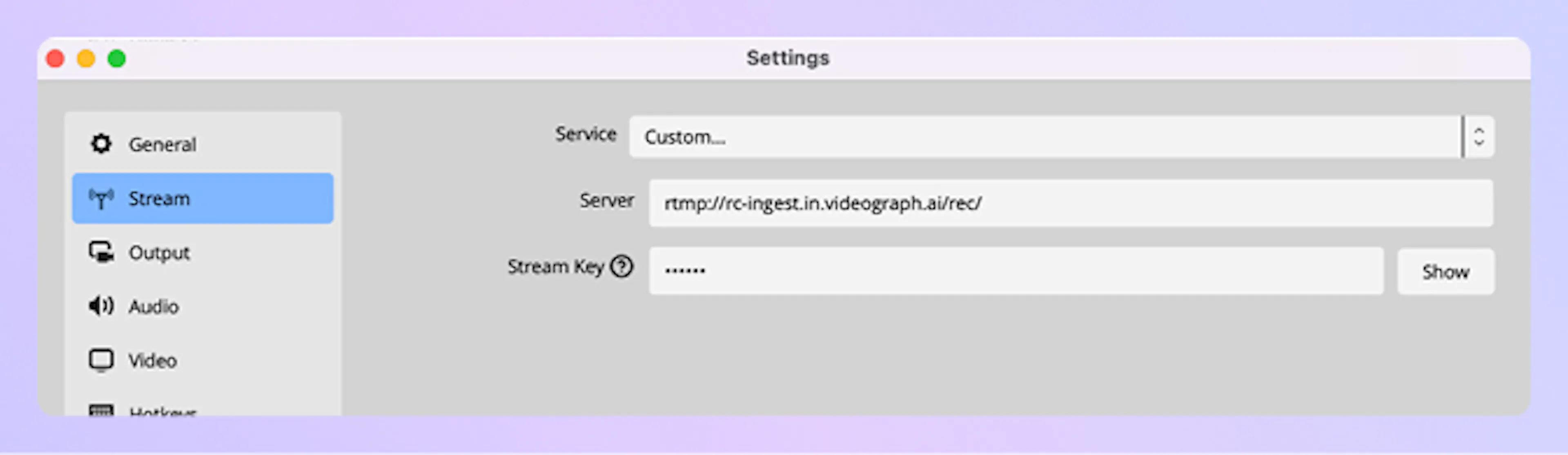 rtmp://rc-ingest.in.videograph.ai/rec -