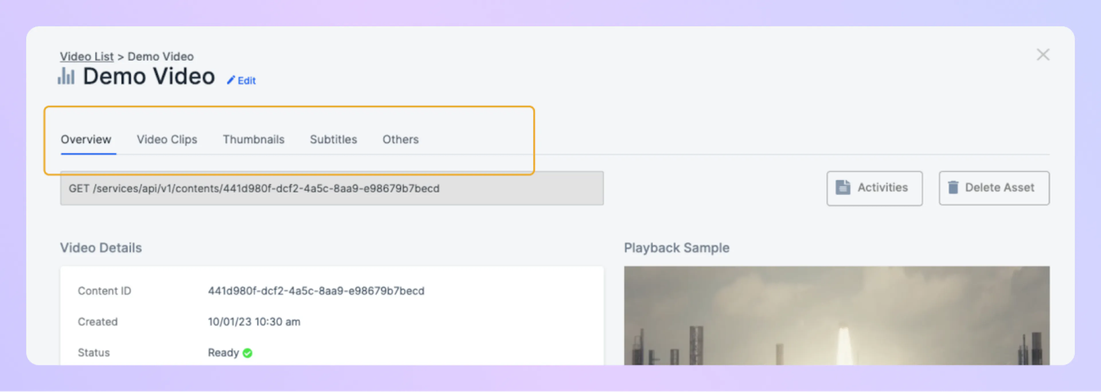 The creation response is your source of truth for tracking the asset from upload to playback. Keep the contentId available in your application or workflow to streamline later calls.