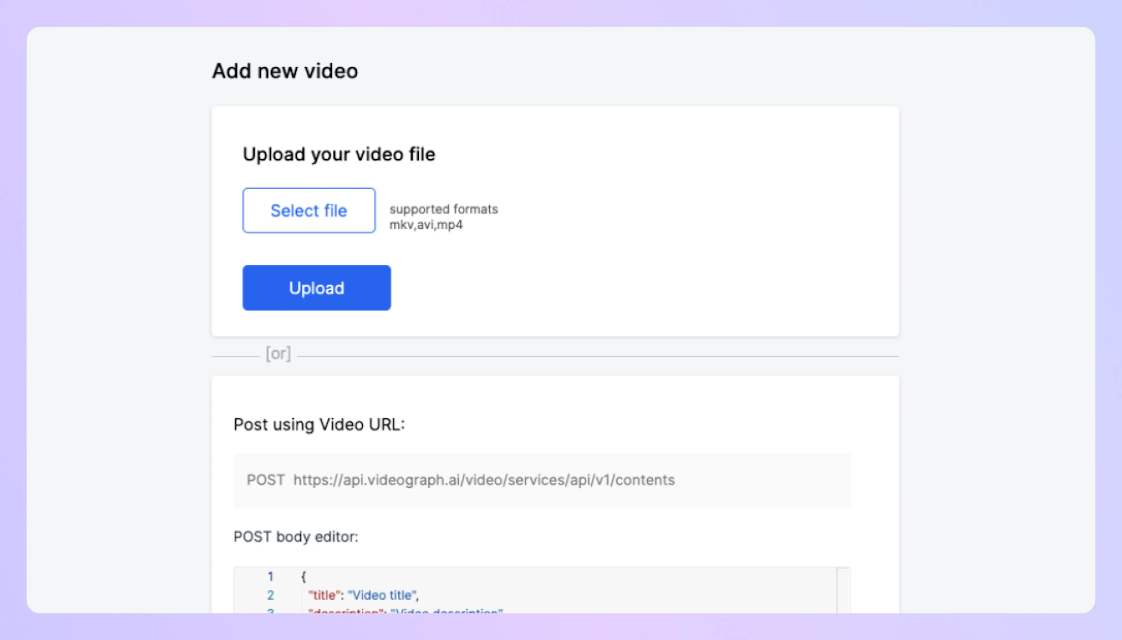 Step-by-step guide for uploading on-demand videos to Videograph using the dashboard or the contents API.